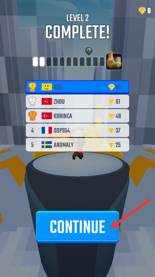4、关卡完成后,点击【CONTINUE】按钮,继续后续游戏内容。