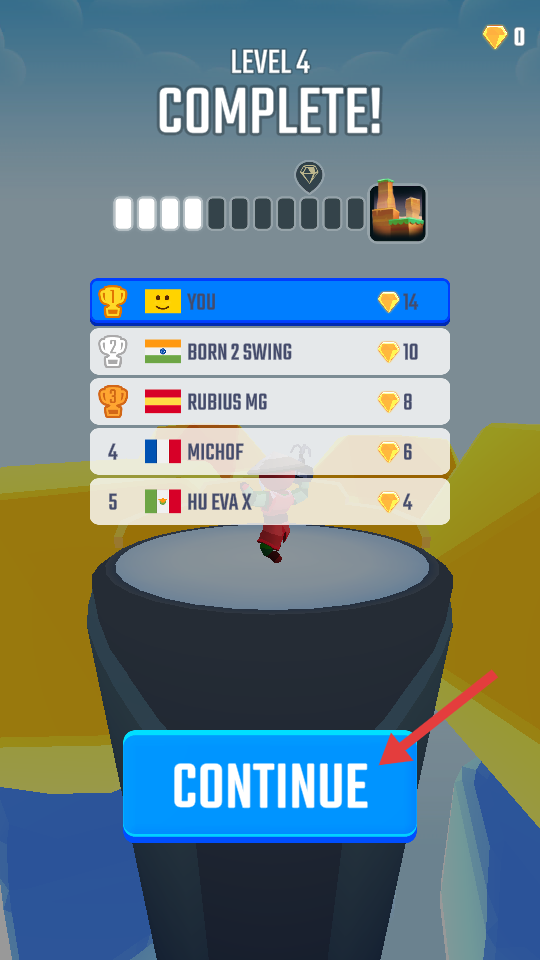 4、关卡完成后,点击【CONTINUE】按钮,继续后续挑战关卡。