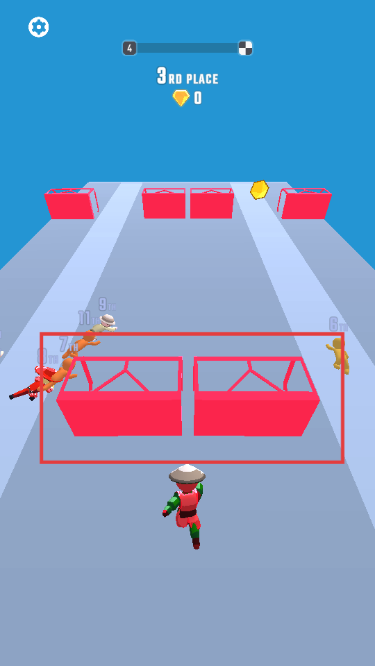 2、在赛道上躲避红色障碍物,同时注意收集钻石,提升排名。