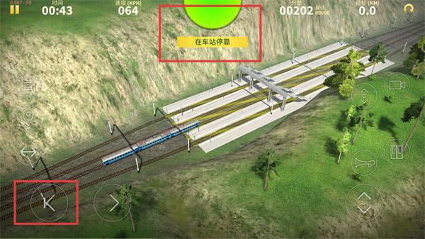 2、按提示【在车站停靠】,操作左侧操控键控制火车减速,向车站区域靠近并完成停靠。