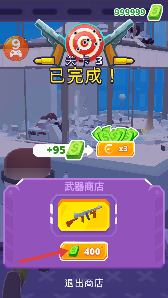3、关卡完成后,可在武器商店花费【400】金币,购买新武器。
