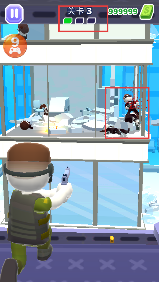 2、持续射击关卡3中的敌人,推进关卡进程,注意观察敌人位置。