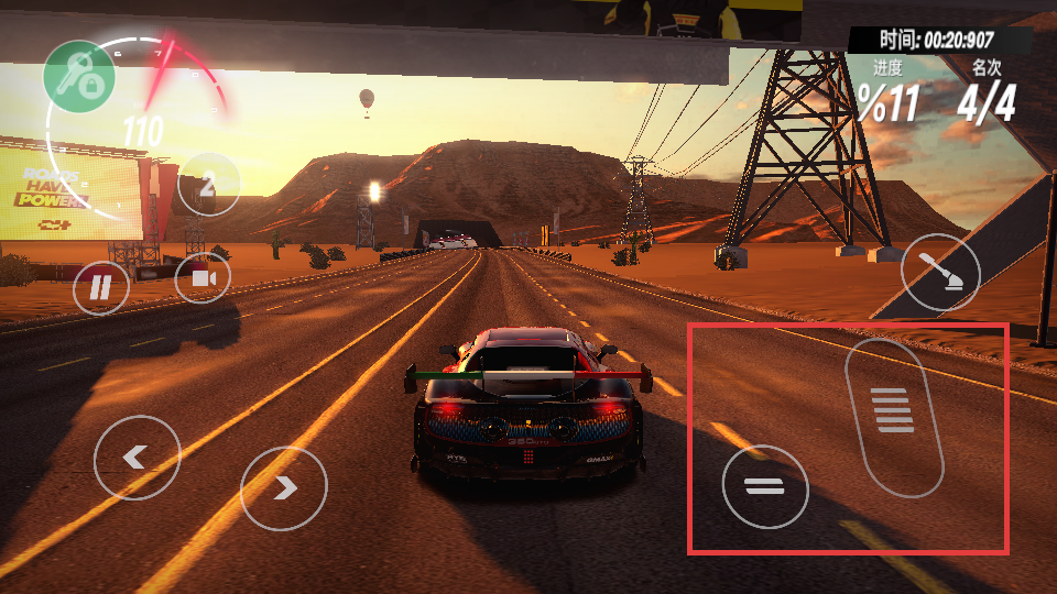 2、利用右侧的控制按钮来操控赛车加速,同时注意赛道前方的路况,保持赛车行驶。