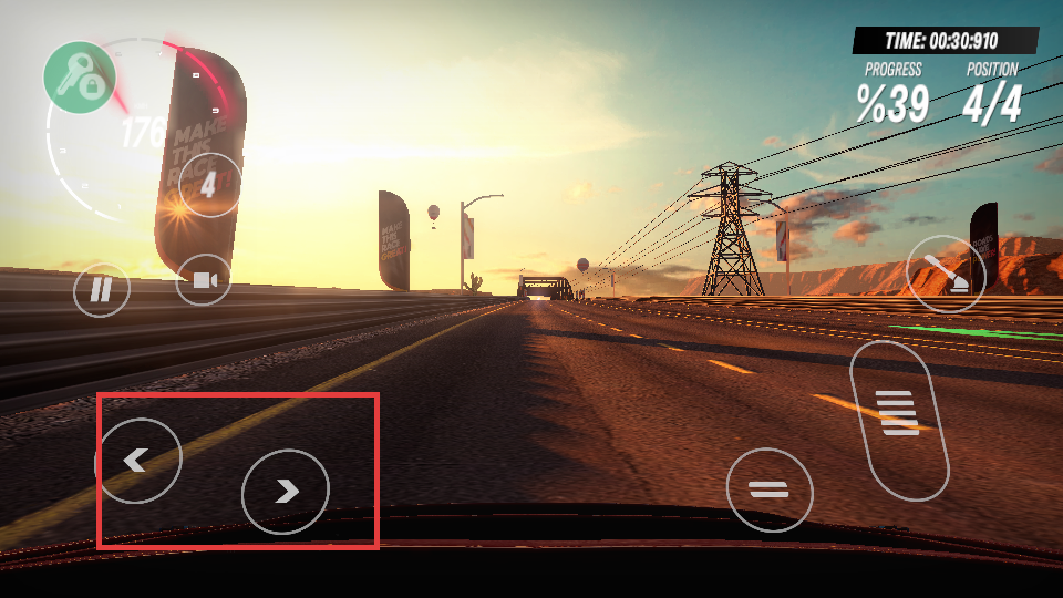 3、当赛道出现变化时,借助左侧的方向按钮调整赛车的行驶方向,确保赛车能沿着正确路线前进。