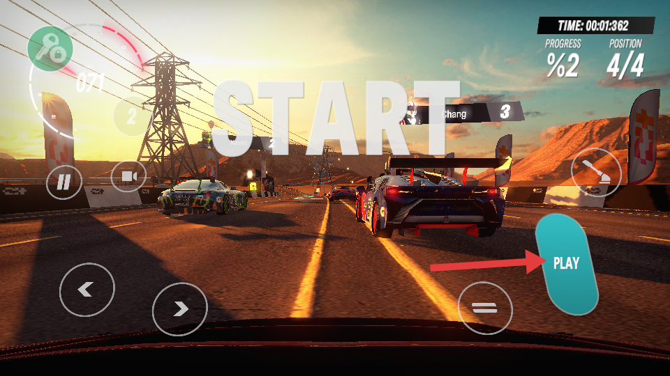 1、看到界面上的【PLAY】按钮,点击它就能开始比赛,准备开启竞速。