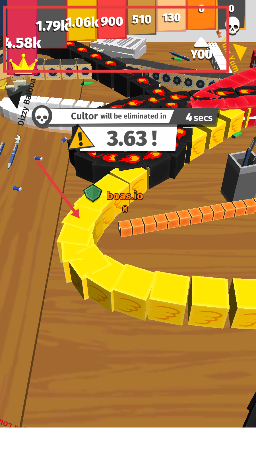 3、在场景中注意避开比自己大的黄色方块蛇,注意上方的分数排名。