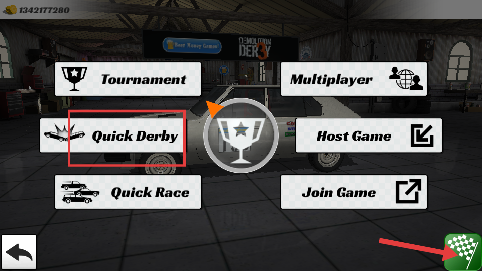 1、选择【Quick-Derby】选项,点击右下角绿色方格按钮,进入对应游戏模式。