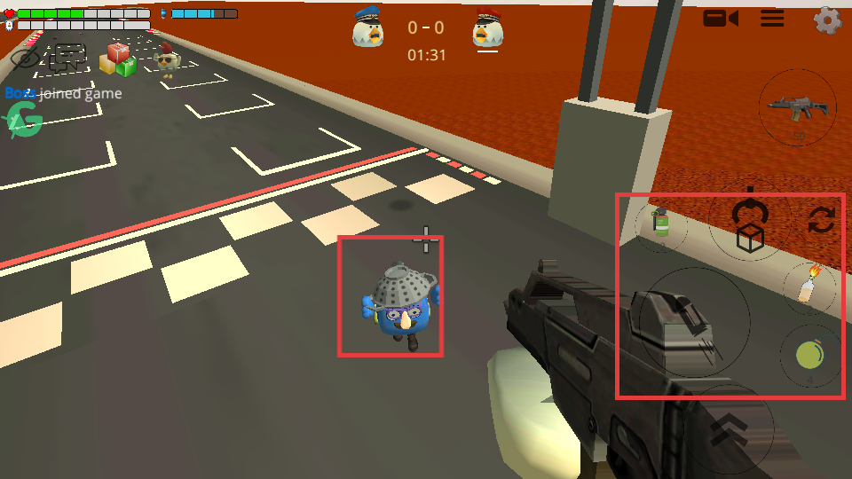 3、比赛过程中,瞄准目标角色,同时使用右侧的道具和射击按钮,进行攻击。