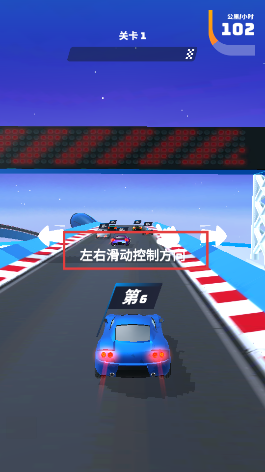 2、比赛时,左右滑动屏幕控制车辆方向,调整行驶轨迹。