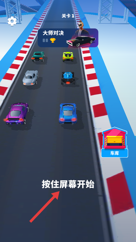 1、根据提示,按住屏幕开始赛车,参与竞速比赛。