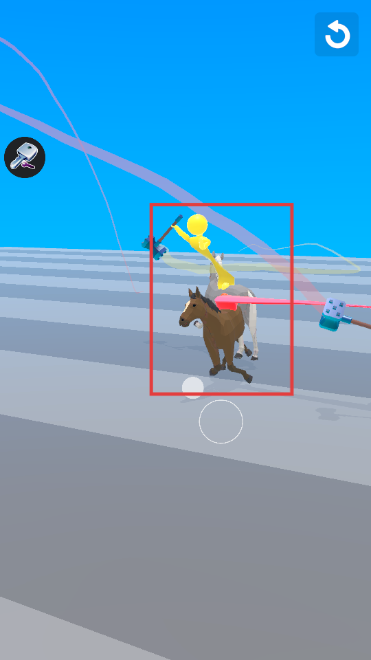 2、靠近棕色马上的敌人时,使用武器发起攻击,打击对手。