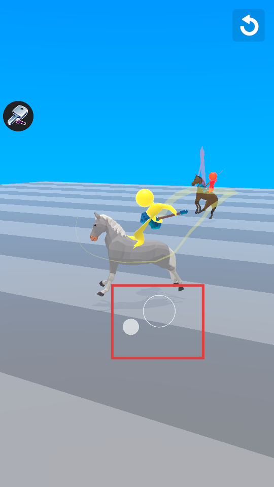 1、使用下方操作区域操控骑马的角色移动,为后续战斗做准备。