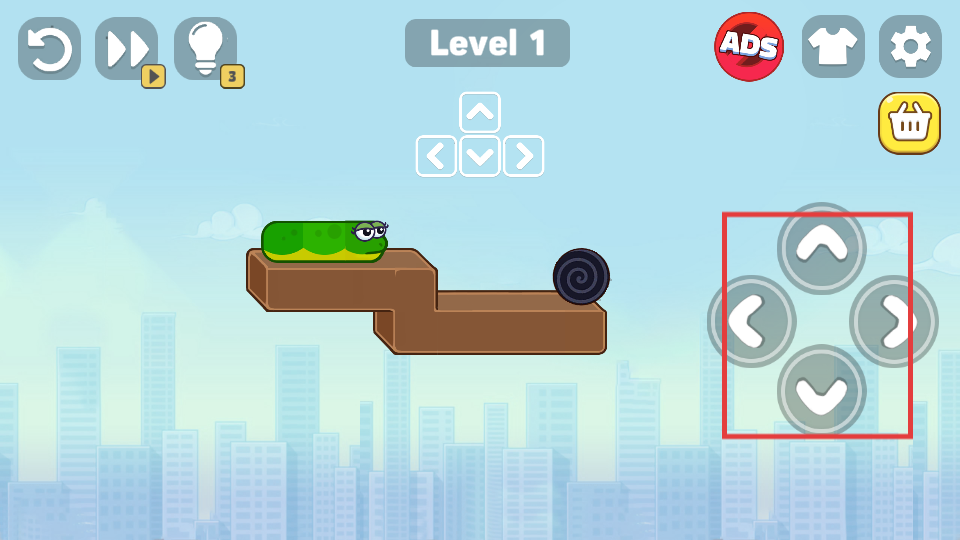 2、使用右侧的方向键,操控绿色小蛇在平台上移动。