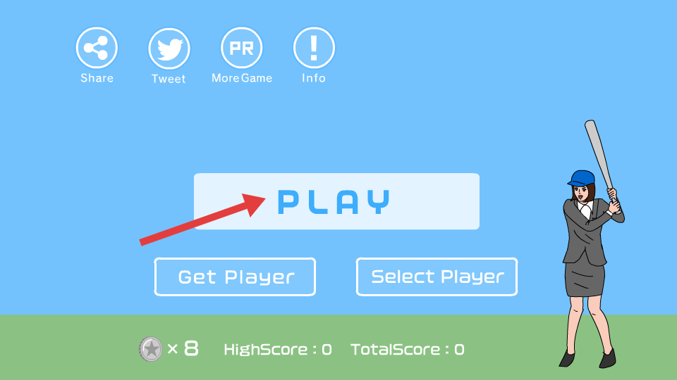 1、点击【PLAY】按钮,进入游戏开始棒球击球挑战。