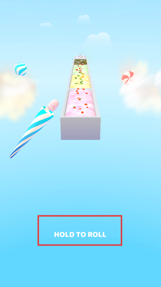 1、根据【HOLD-TO-ROLL】提示,使棉花糖棒滚动,开始在赛道上收集食材。