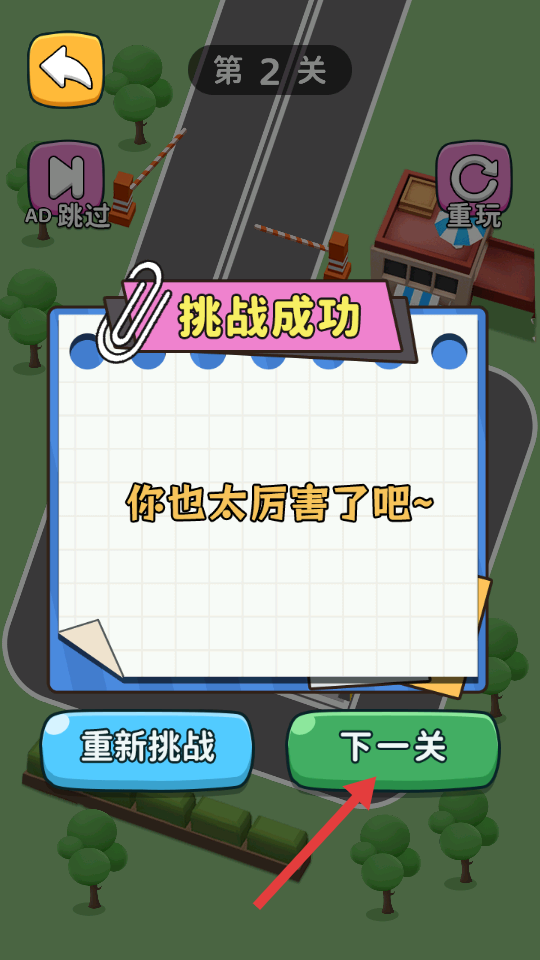 4、挑战成功后,点击【下一关】按钮,进入下一个关卡。