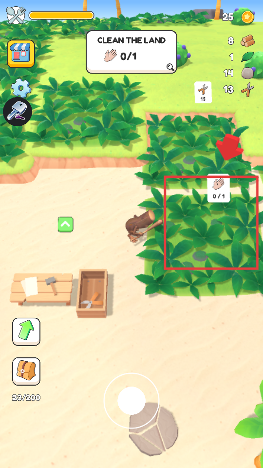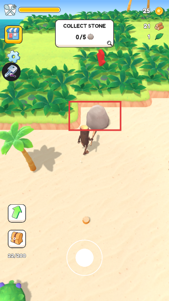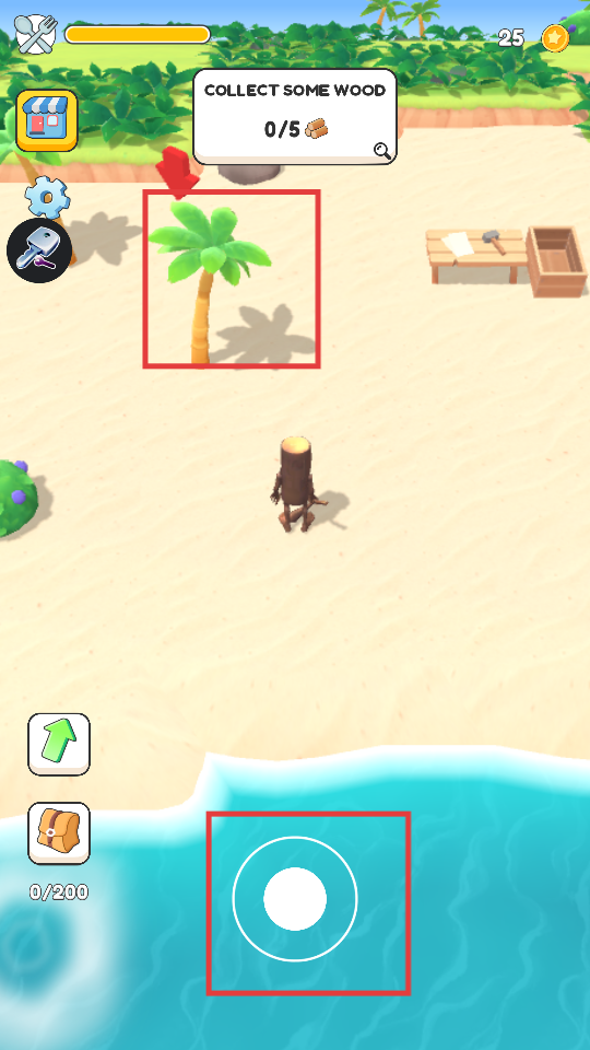 1、收集木材,朝着棕榈树方向行动,获取木材资源。