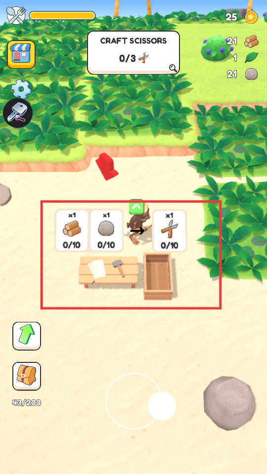 3、在制作台处,准备木材、石头等材料,制作剪刀。