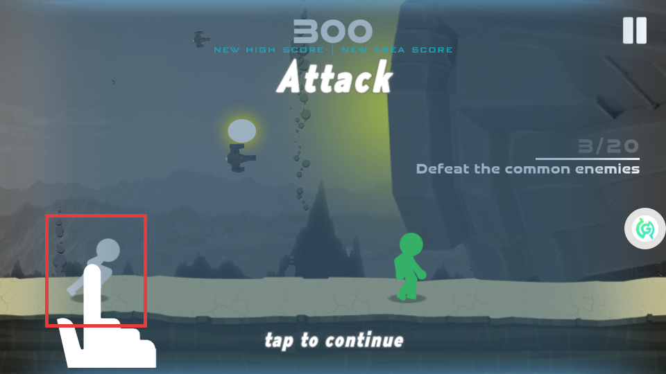 2、按照提示进行攻击操作,然后点击【tap-to-continue】,继续游戏并积累分数。