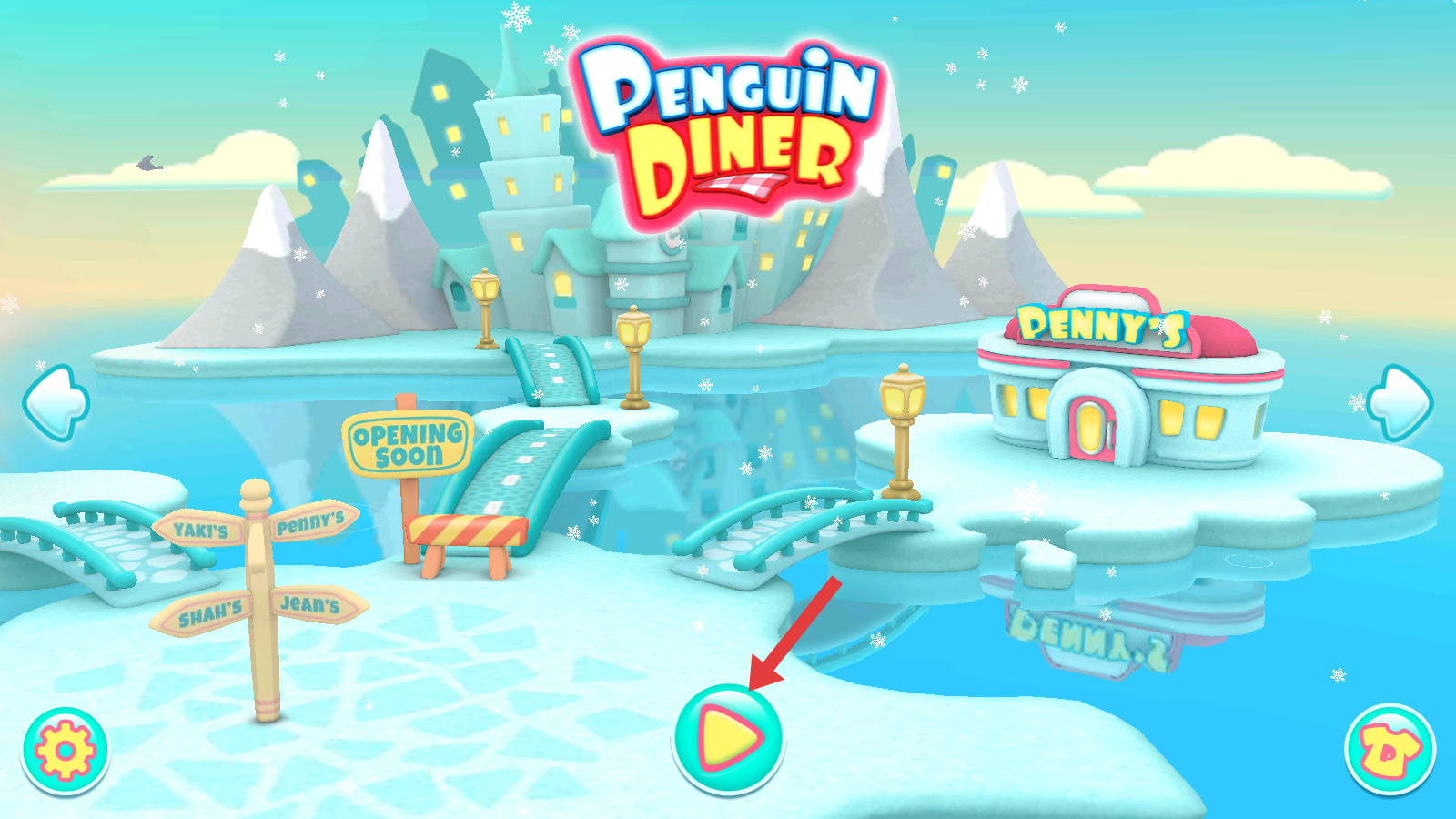 1、采用精美的3D立体画面呈现冰雪世界餐厅场景,可爱的企鹅造型与生动的顾客角色营造温馨氛围。