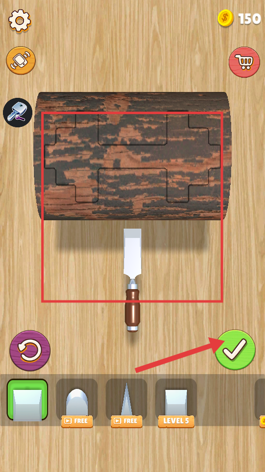 2、使用工具雕刻木头,按照轮廓进行处理,完成后点击绿色对勾按钮。