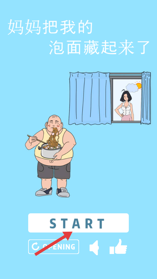 1、在游戏主界面点击【START】按钮,进入游戏帮助角色寻找泡面。