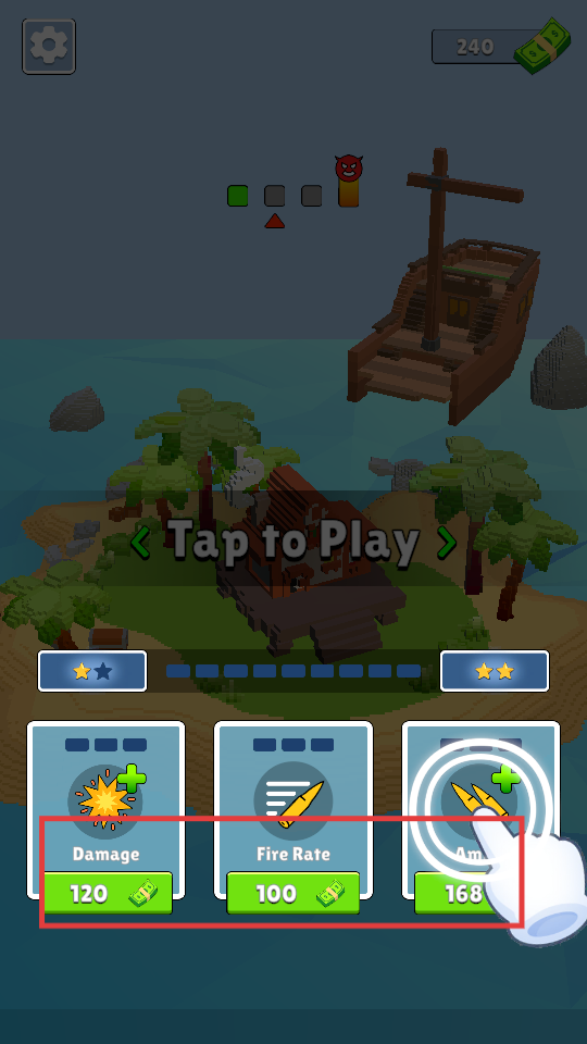 4、可使用金币提升武器的【Damage】【FireRate】【Ammo】等属性。