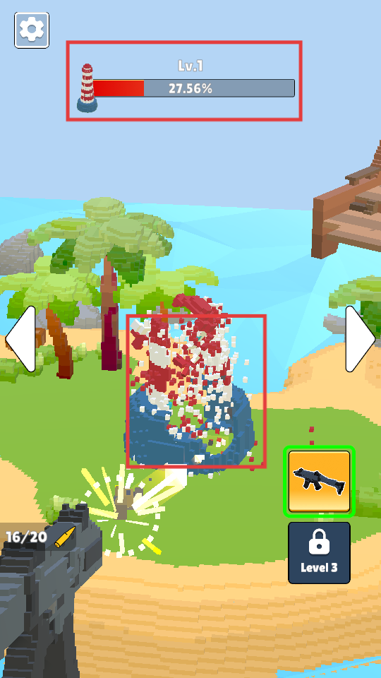 3、持续射击灯塔,使其逐渐被破坏,同时关注上方的进度条变化。