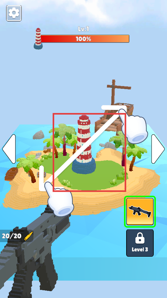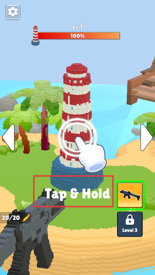 2、根据提示【Tap&Hold】,长按屏幕对灯塔进行射击。