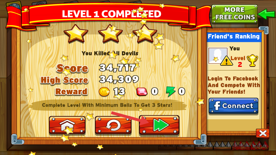 4、关卡完成后,点击绿色箭头按钮,进入下一关游戏。