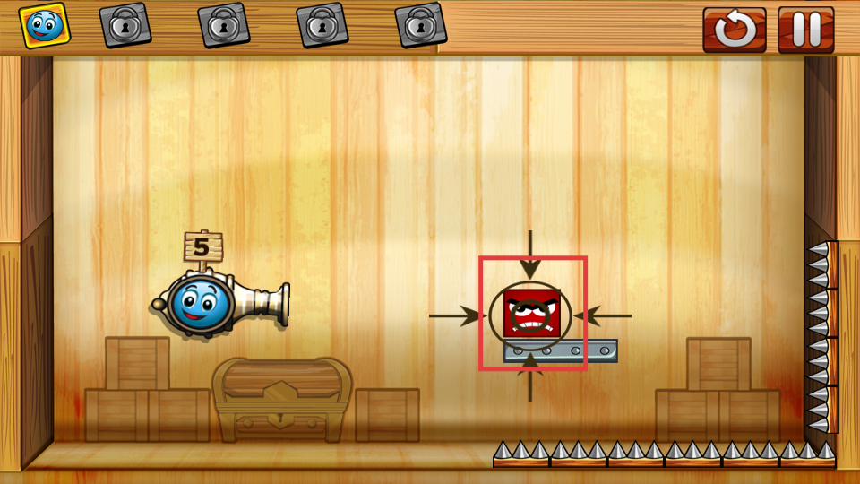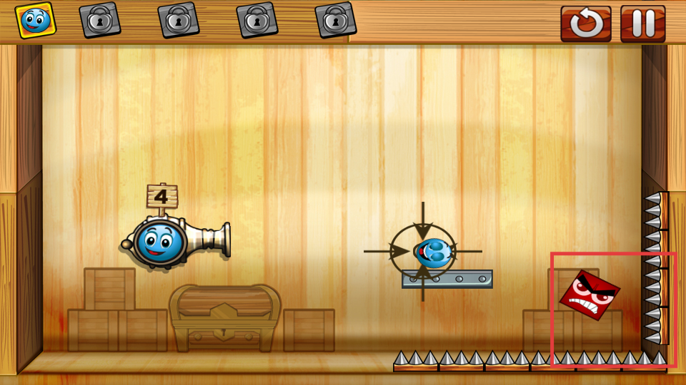 2、瞄准红色带怒脸的方块,发射蓝色小球,攻击该目标。