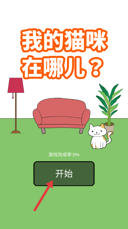 1、在游戏主界面点击【开始】按钮,进入游戏开始寻找猫咪之旅。