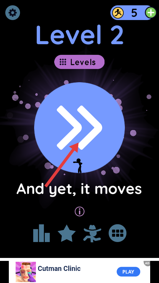 4、Level1完成后,点击带有双箭头的按钮,进入Level2游戏。