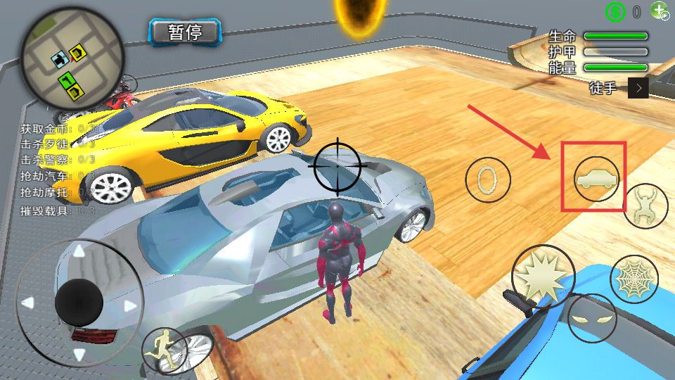 2、游戏中靠近车辆后,点击界面右侧的【车辆】图标按钮,即可切换为驾驶模式,准备进行坡道挑战。