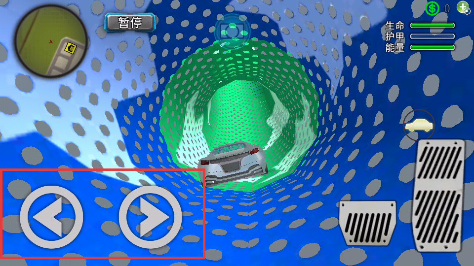 4、在通过隧道等狭窄路段时,使用界面左侧的【左箭头】和【右箭头】按钮调整车辆方向,保持车身稳定穿过隧道,避免碰撞。
