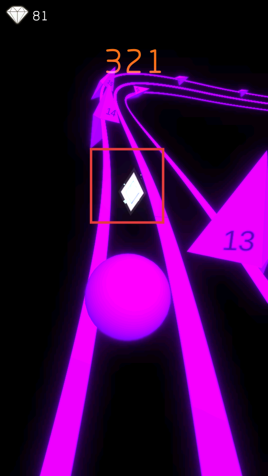 3、在球体移动过程中,收集路径中的钻石,持续躲避障碍以获取更高分数。