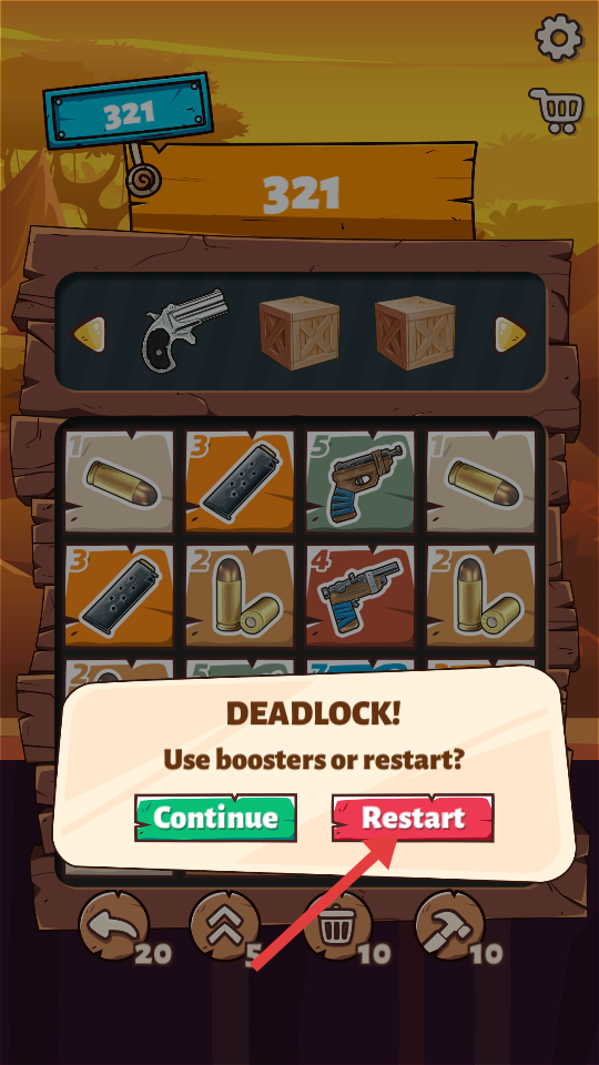 4、当方块内满格,可选择【Restart】重新开始游戏,或用道具继续。