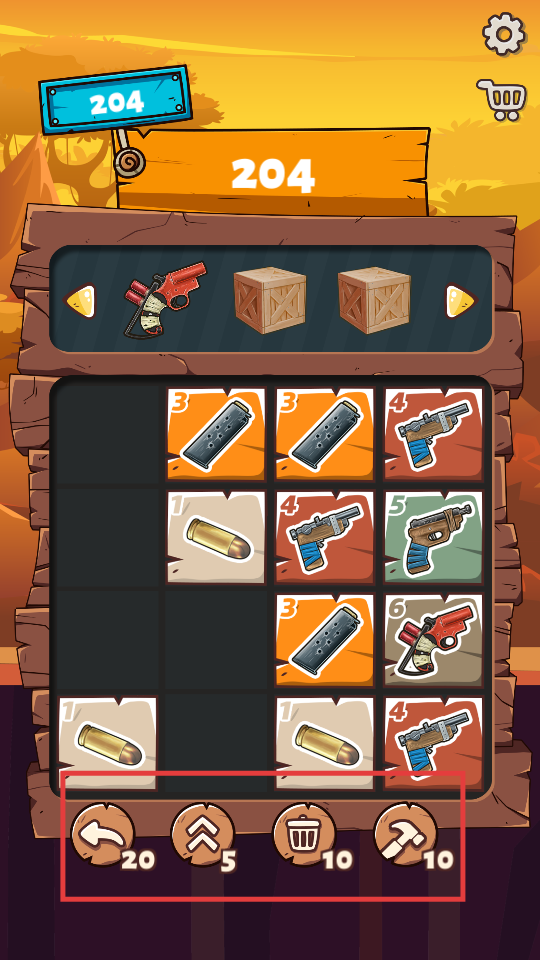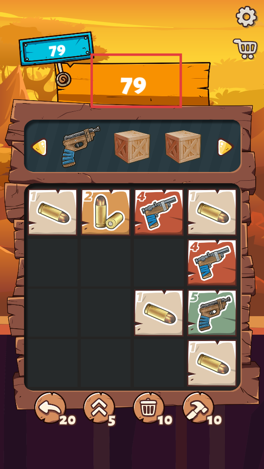 2、游戏中,观察网格内的手枪,合并相同的手枪,提升分数。