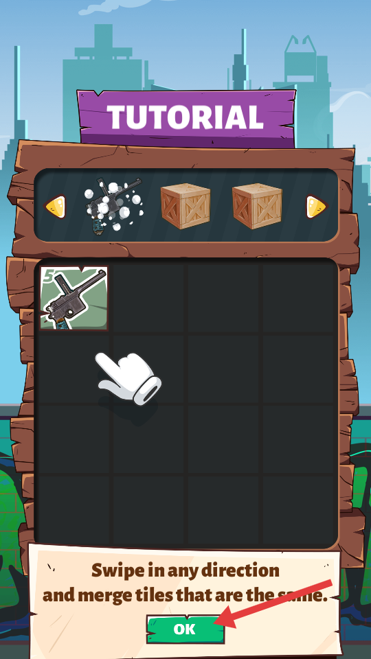 1、在教程界面,阅读提示学习游戏玩法,点击【OK】开始游戏。