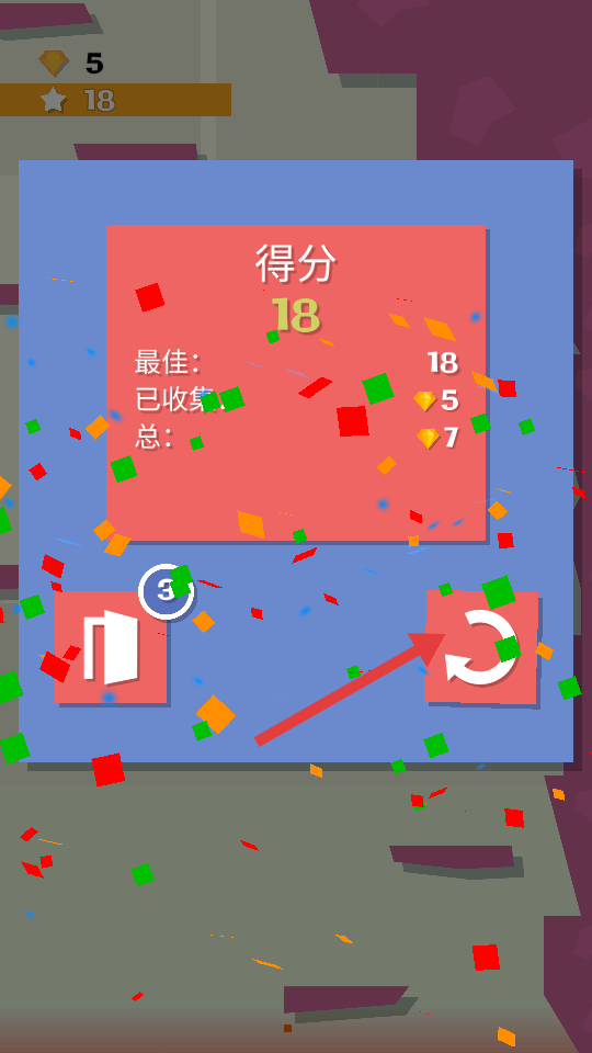 3、在跳跃过程中,尽量收集黄色的钻石,提升得分。