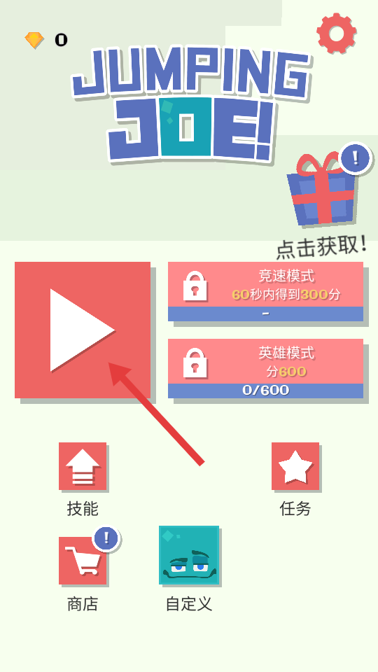 2、按照提示,左右滑动屏幕,控制角色跳跃,开始游戏。