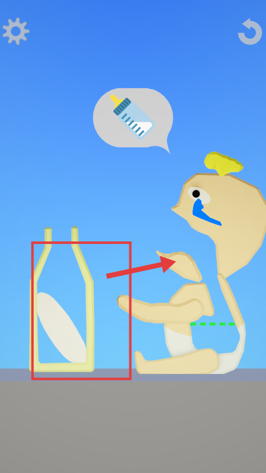 2、将瓶子里的液体喂食给宝宝,完成宝宝的进食需求即可通关。