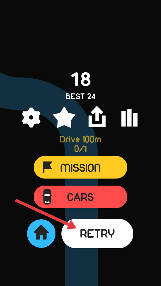 4、游戏结束后,若想重新挑战,点击【RETRY】按钮,再次开始游戏。