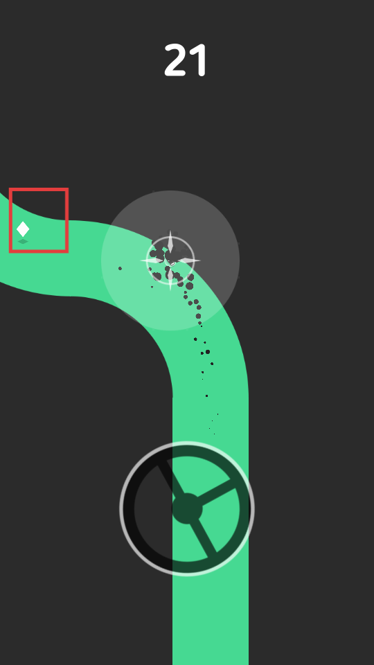 3、继续操控方向盘,让小车在绿色赛道上行驶,同时尽量收集赛道上的钻石。
