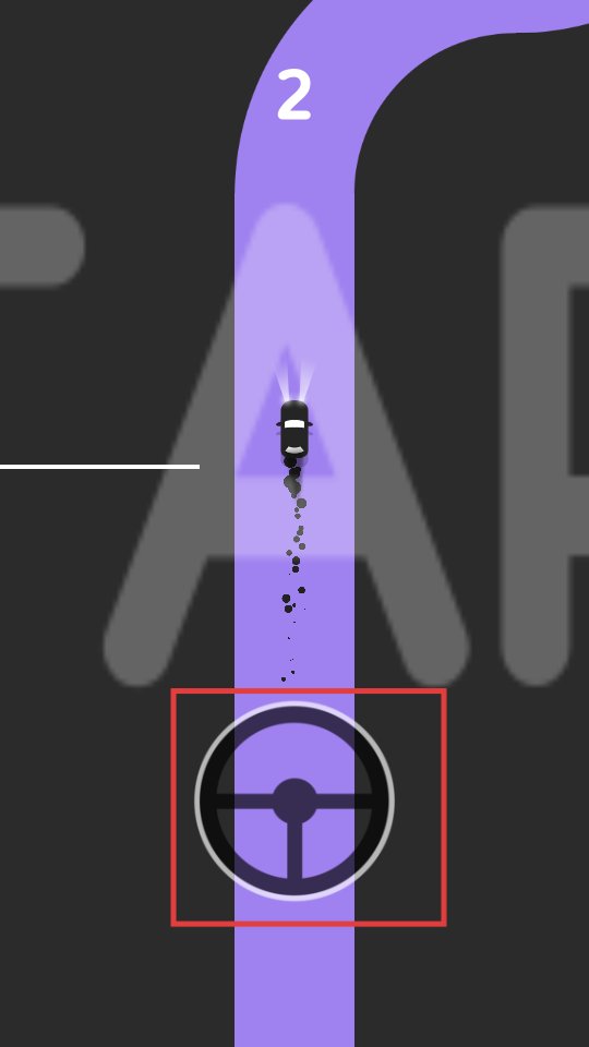2、操控下方的方向盘,引导小车在紫色赛道上行驶,注意赛道的走向。