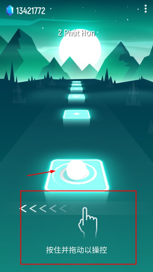 3、按住并拖动屏幕,操控光球跟随节奏在方块路径上移动,获取分数。