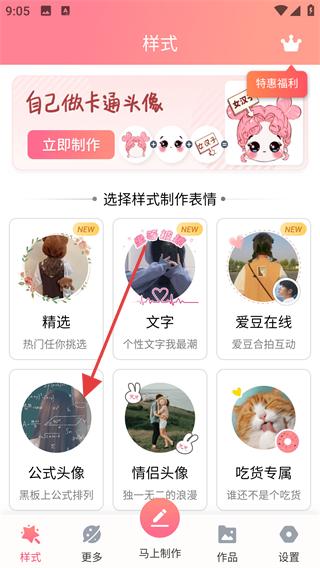 1、进入【样式】页,选择目标头像类型(如【公式头像】),进入对应模板选择界面。