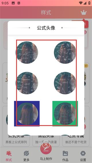 2、在模板页挑选心仪的【公式头像】模板,点击进入图片选择环节。
