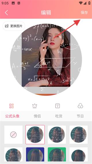 4、在编辑页调整头像效果后,点击右上角【保存】,即可完成头像制作并导出。