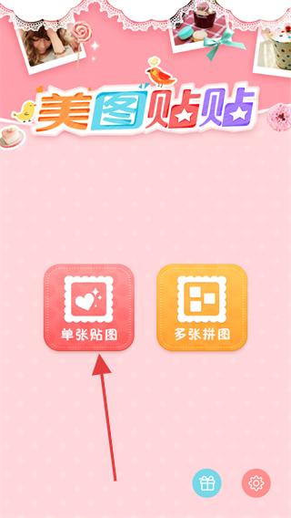 1、打开美图贴贴,点击【单张贴图】选项,进入图片选择界面并选定要编辑的图。